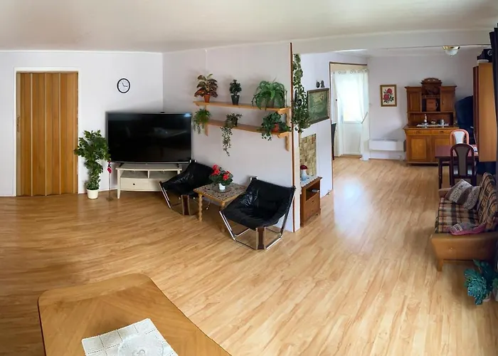 Appartamento House ha un balcone e offre agli ospiti un impianto di climatizzazione, una TV a schermo piatto con canali satellitari per un soggiorno più piacevole. Quest'alloggio ha 3 camere da letto. Ci sono 1 bagno con un bagno alla francese e una doccia e anche asciugacapelli e asciugamani.